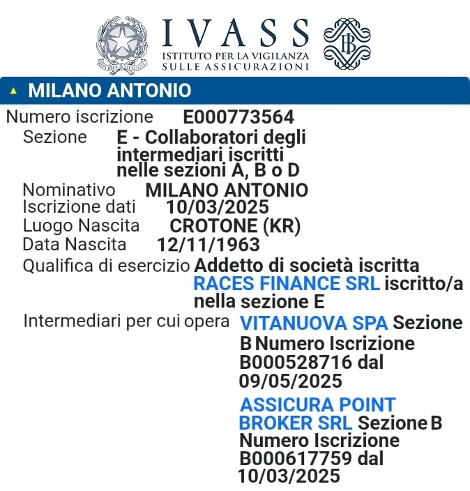 Antonio ha accumulato oltre trent’anni di esperienza nel settore assicurativo e finanziario, mostrando un costante impegno nell’evolversi e nell’adattarsi alle esigenze del mercato. La sua iscrizione all’Albo Unico dei Consulenti Finanziari abilitati all’offerta fuori sede testimonia la sua competenza e la sua capacità di operare con importanti istituti finanziari e bancari, oltre a istituti assicurativi di rilievo. “Grazie ad Antonio, ho trovato il mutuo perfetto per la mia nuova casa. Le condizioni erano davvero vantaggiose e il processo è stato semplice e veloce.”